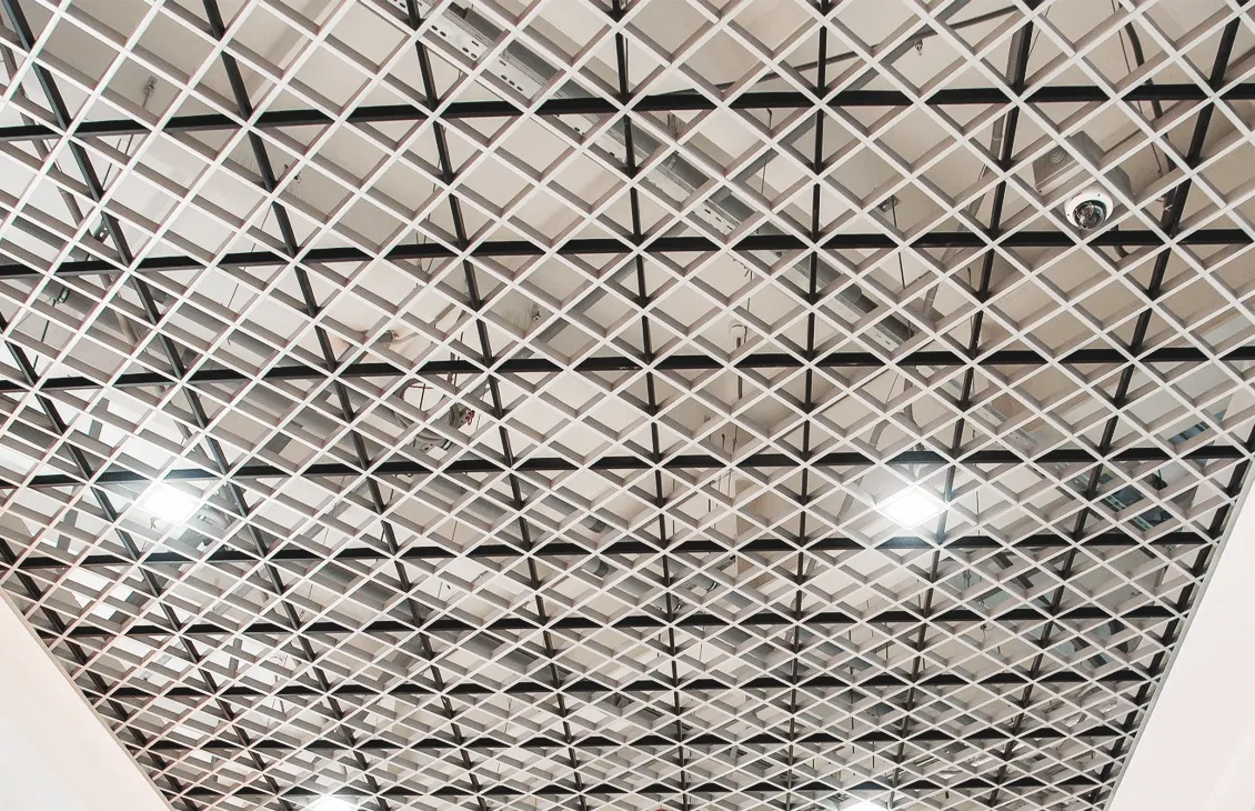 Подвесной металические потолок Грильято D15 Диагональное ячейкой 150х150мм