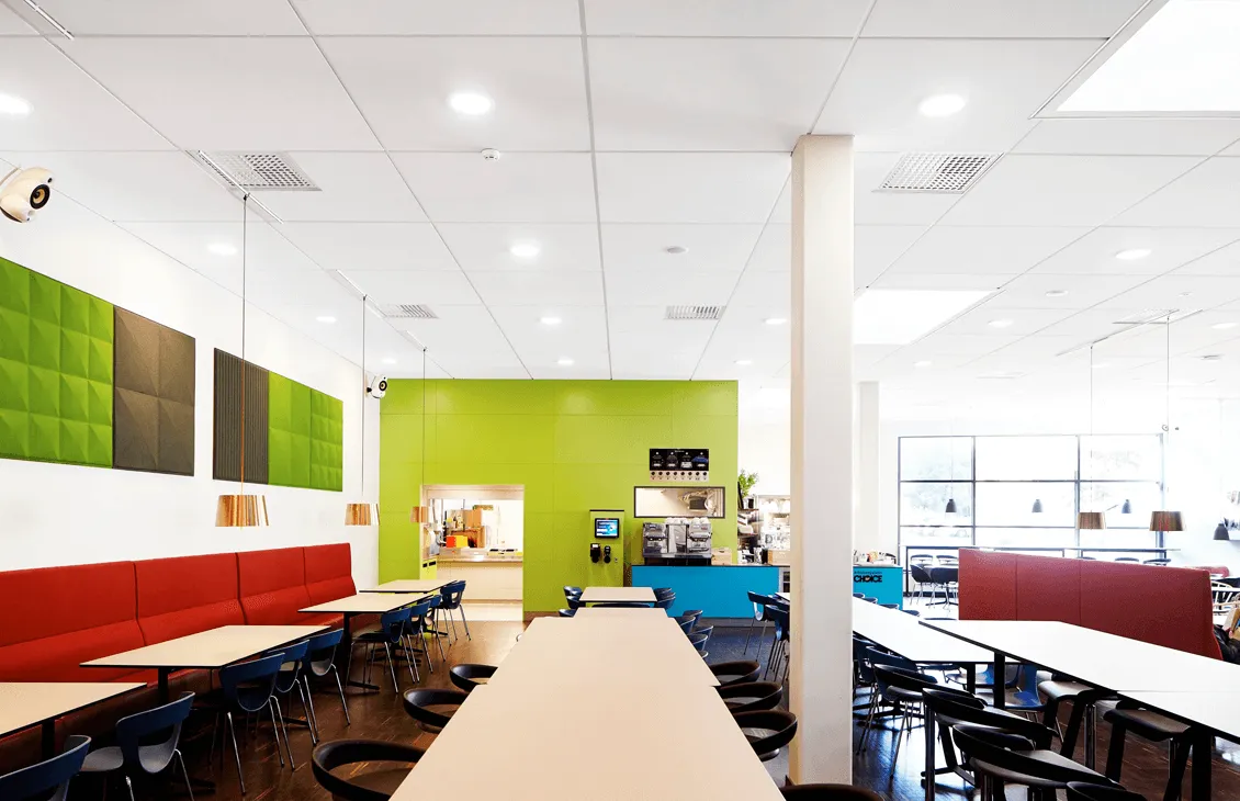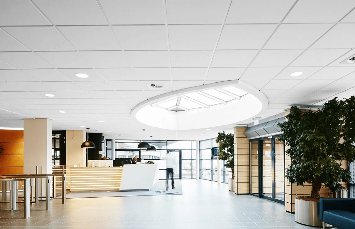 Акустическая подвесная плита Ecophone Фокус E особенно подходит для офисных пространств, конференц-залов, учебных заведений и других мест, где важно создать функциональное, комфортное и эстетически привлекательное пространство.