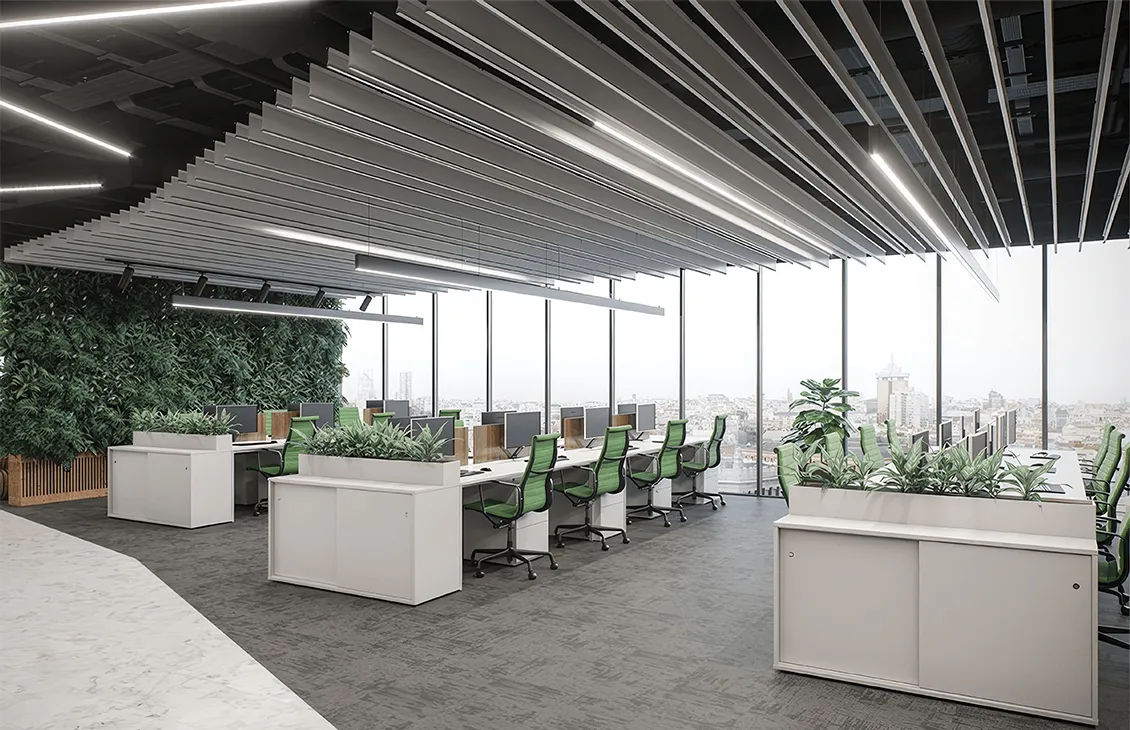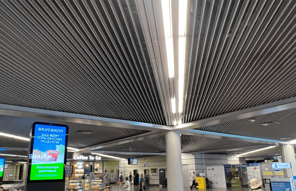 - Эстетическое превосходство: Потолки выполнены в форме пластин, что придает им элегантный и современный вид, а также создает визуальный объемный эффект, преобразуя интерьер.